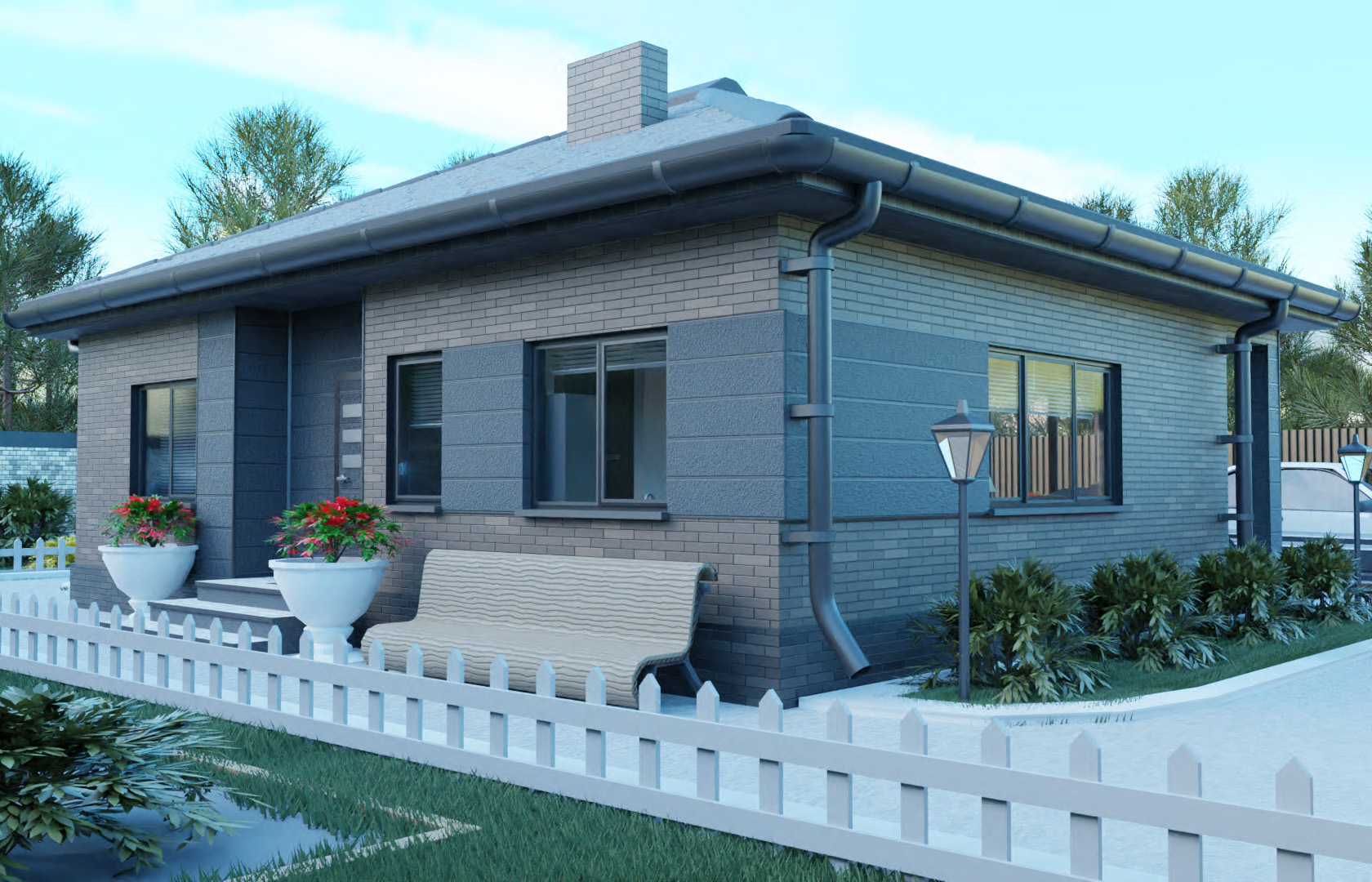 Различные кирпичные цветовые решения фасада позволяют реализовать дом как в классическом, так и современном виде.